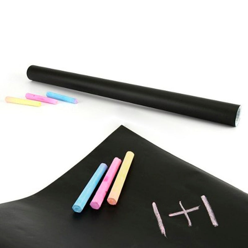 Transforma cualquier rincón en un espacio creativo con nuestra pizarra negra adhesiva. Ideal para niños curiosos, artistas en miniatura y pequeños genios en formación. Solo despega, pega… ¡y deja que las tizas de colores hagan su magia!